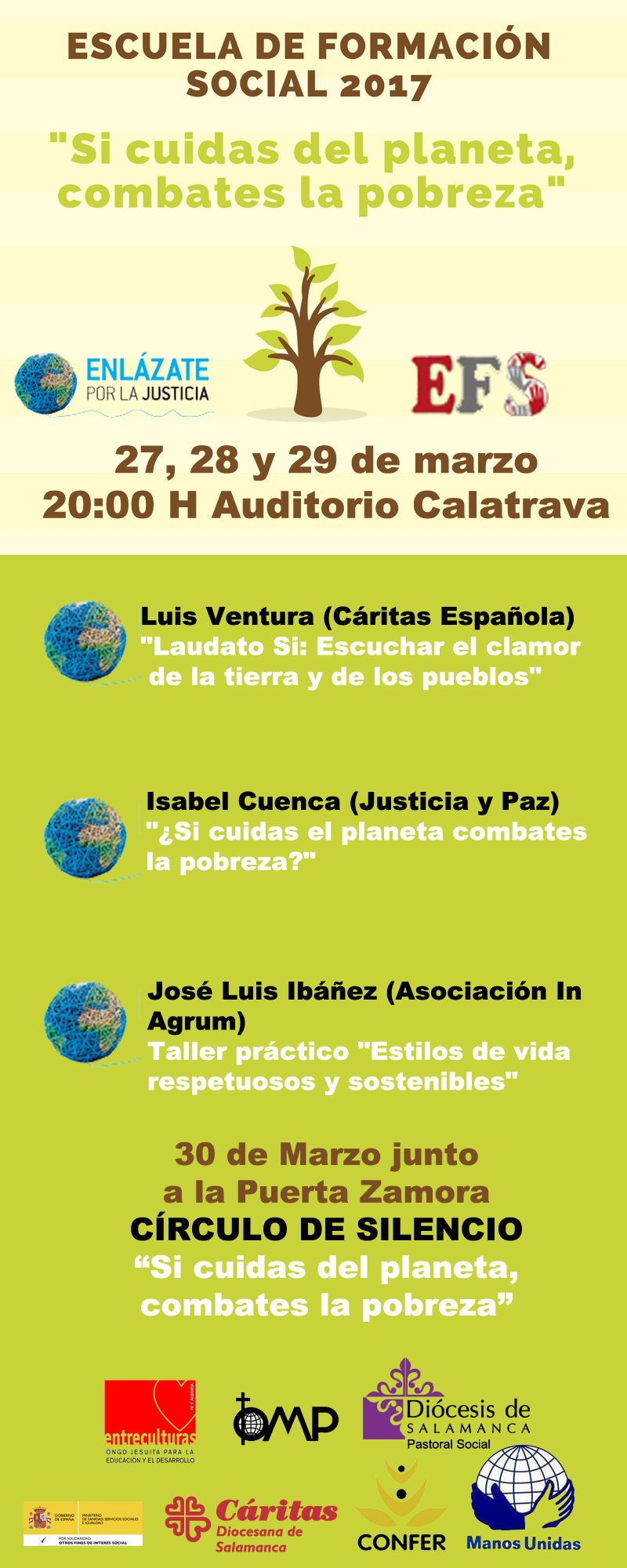 El próximo lunes 27 de marzo comenzará la Escuela de Formación Social, este año organizada por Entreculturas, Obras Misionales Pontificias, Pastoral Social, CONFER, Manos Unidas y Cáritas Diocesana de Salamanca. Las sesiones tendrán lugar a las 20:00 h en el auditorio Calatrava.