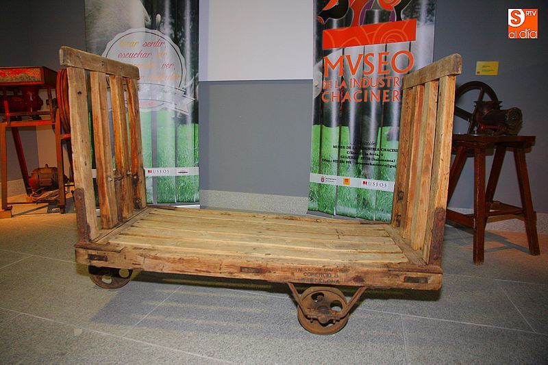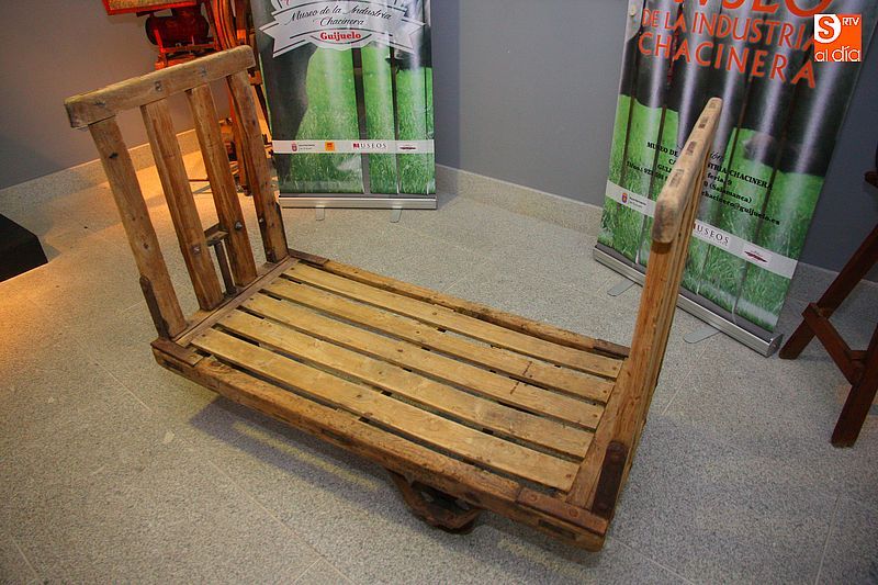 El Museo de la Industria Chacinera ha presentado hoy una nueva donación que sirve para aumentar el fondo hasta las 135 piezas de distintas épocas. En esta ocasión se ha tratado de un carro para jamones de mediados del siglo XX, donado por la familia Alejandro Castro. Este tipo de carros era habitual en las fábricas de la época para el traslado de jamones y paletas desde las salas de despiece hasta los saladeros. En la presentación estuvieron Isabel Castro Buyón y Miguel Ángel Alejandro, quienes señalaron que salvaron la pieza tras la renovación de la fábrica de los hermanos Parra hace unos 25 años: "Cuando hicieron reformas le dieron a mi padre una serie de viejos objetos de madera para hacer leña, pero nos dio pena y pensando que podría tener alguna utilidad ha estado desde entonces en casa, donde lo hemos utilizado para transportar leña o incluso para que jugaran los niños" indicó Isabel.
