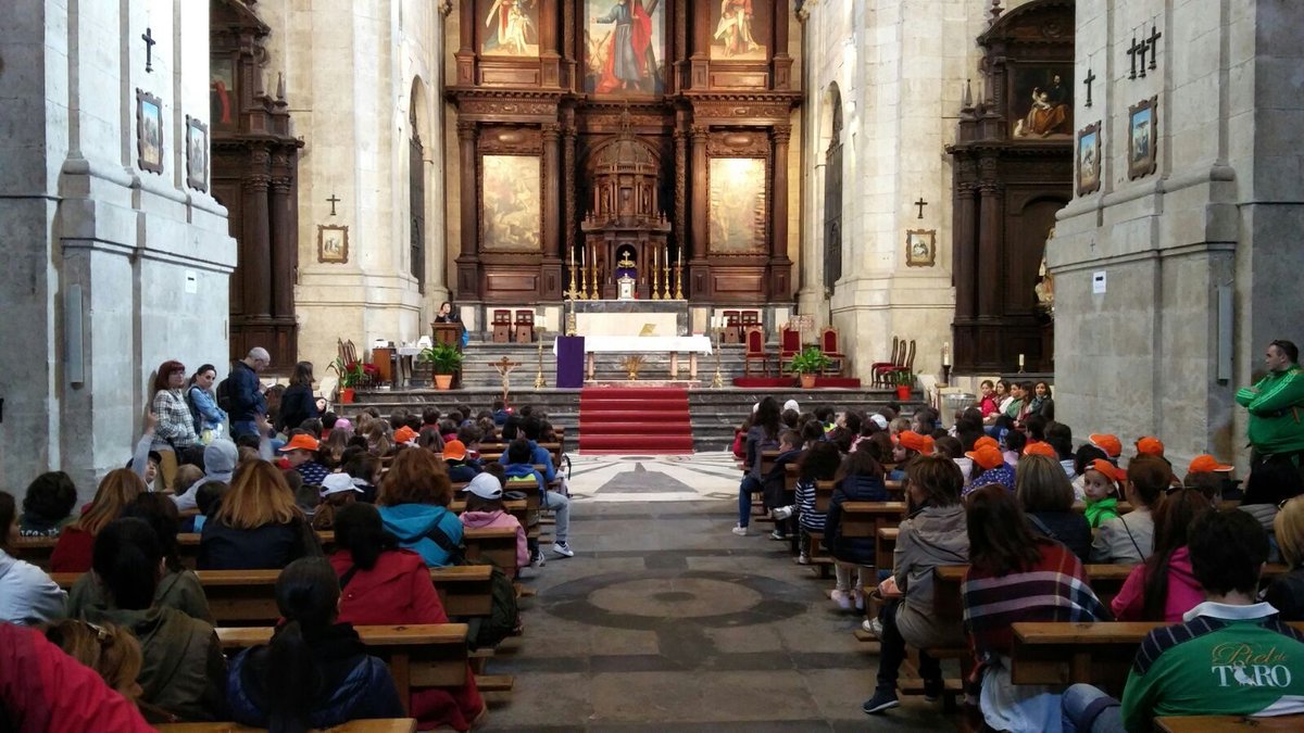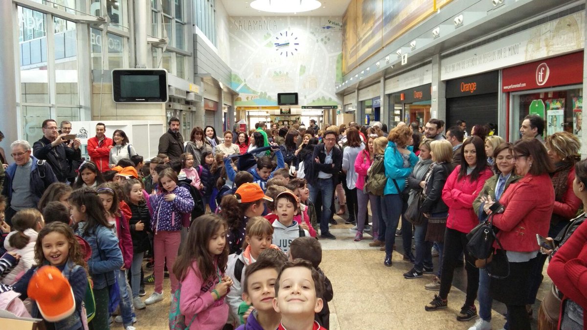 Ese gran grupo que ya ha convertido en una cita 'fija' su excursión en tren a Ciudad Rodrigo es el de los alumnos de 1º y 2º de Educación Primaria del Colegio Santa Teresa de Salamanca capital, que durante la mañana del jueves estuvieron en tierras mirobrigenses acompañados de cuatro profesores y un sinfín de progenitores hasta totalizar una expedición de unas 200 personas.