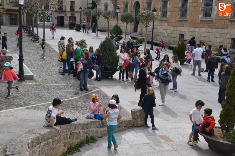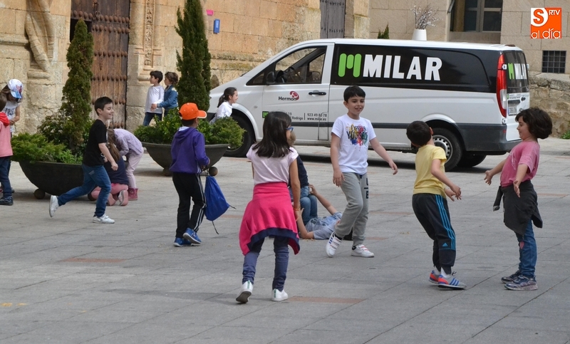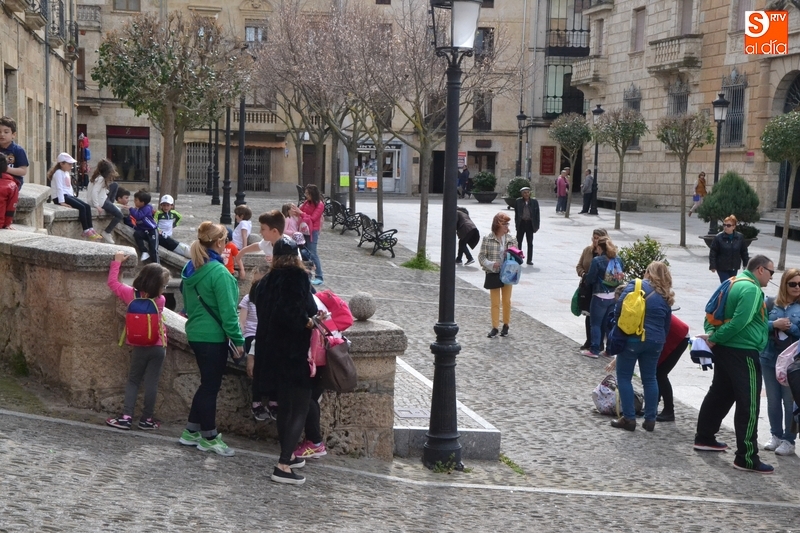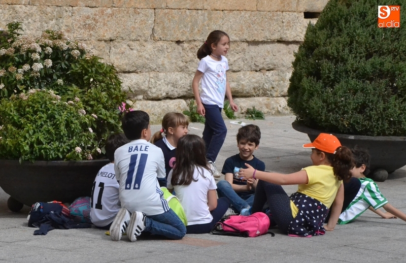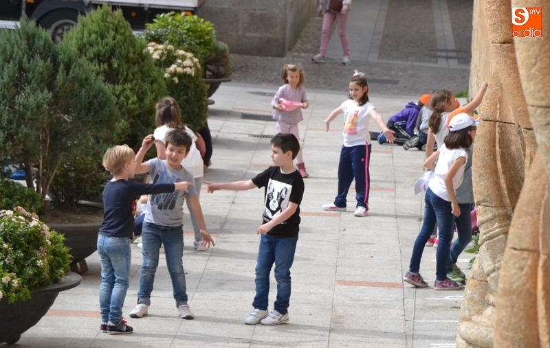 Pasado el mediodía, toda la expedición se reunió de nuevo en la Plazuela del Conde, donde los niños disfrutaron de un rato libre de juegos antes de emprender otra vez el camino hacia la Estación de Tren, ya que este año habían decidido volver al concluir la mañana en vez de hacerlo a media tarde como en las excursiones llevadas a cabo por el mismo Colegio en 2013 y en 2015.