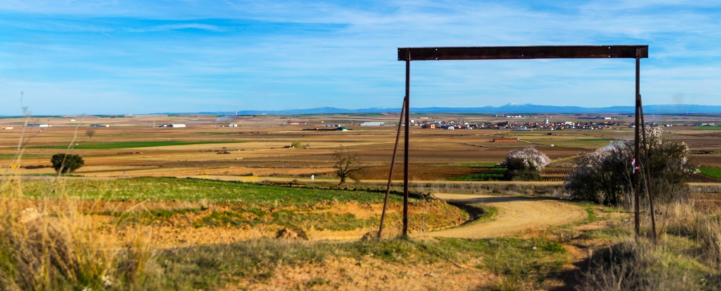 Cuántas veces habrán subido los vecinos de Babilafuente a su monte y se habrán parado a contemplar las espléndidas vistas. Desde allí ha tomado Iván Fraile esta panorámica, en la que se puede ver el municipio enmarcado en un viejo cartel, situado a medio camino de lo más alto de la elevación.