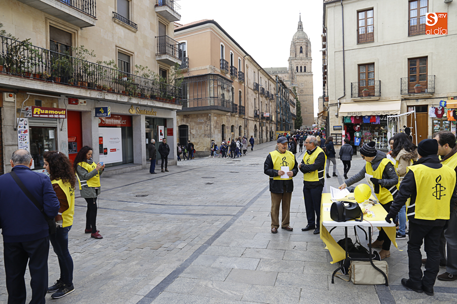Amnistía Internacional ha salido a la calle este sábado para pedir #JusticiaParaSiria, en el sexto aniversario del conflicto y centrando la atención en las graves violaciones de derechos humanos que se están cometiendo en la prisión militar de Saydnaya. La campaña Justicia para Siria pide a los gobiernos que pongan fin a la impunidad y hagan realidad la rendición de cuentas para el pueblo sirio a través de dos vías. Por un lado, brindándole apoyo, financiando el mecanismo de investigación sobre Siria votado por la Asamblea General de las Naciones Unidas en diciembre de 2016, y por otro lado, aplicando el principio de jurisdicción universal para investigar y enjuiciar, en sus propios tribunales, a los presuntos autores de crímenes de guerra y de crímenes de lesa humanidad en Siria.