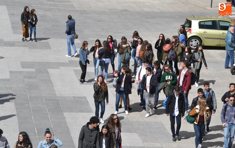 Como buena parte de los fines de semana, Ciudad Rodrigo recibió unas cuantas visitas turísticas en la mañana del sábado, como por ejemplo la de un gran grupo de jóvenes portugueses que a media mañana estaba en la Plaza Mayor (en el parking de la Avenida de Sefarad había en total 5 autobuses).