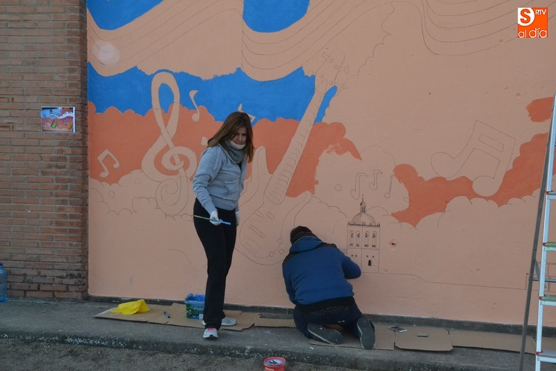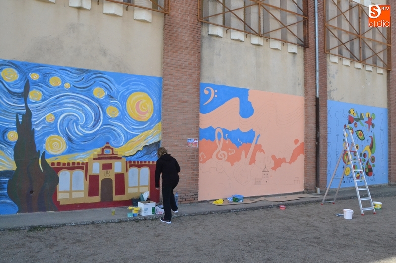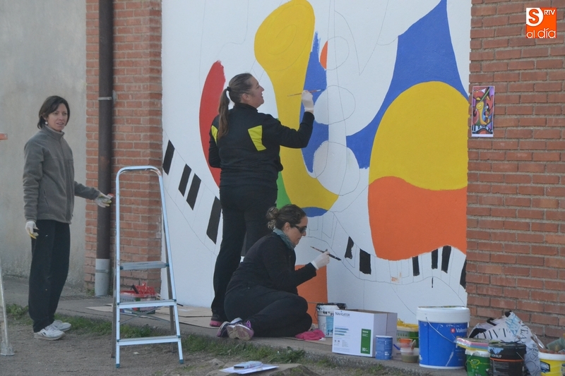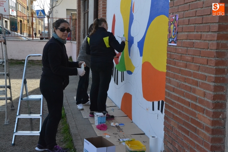 Al mismo tiempo, a lo largo de la mañana un grupo de padres estuvo trabajando en el pintado de nuevos murales con la música como eje en la pared del pabellón de la Avenida Conde de Foxá que da al colegio, que se empezó a decorar el año pasado con motivo también de la Semana Cultural.