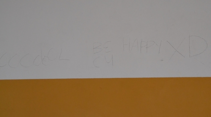 Como se puede ver en las imágenes, esos garabatos consisten en una serie de inscripciones sin demasiado sentido en la zona blanca (el único que tiene sentido es uno que dice Be Happy, Sé feliz).