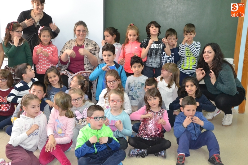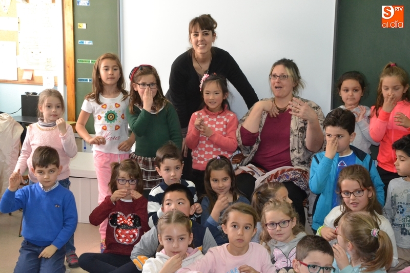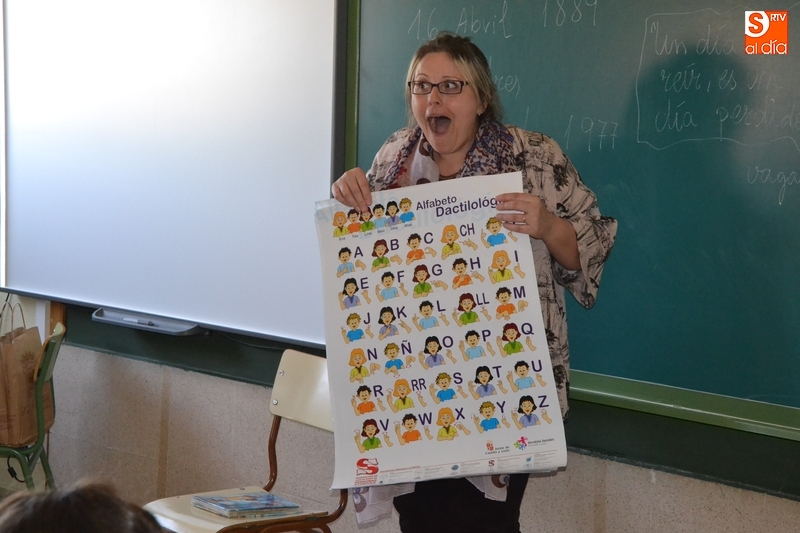 Para arrancar la Semana Cultural, las actividades de la mañana del lunes tuvieron lugar por clases, aunque hubo una actividad común en todas ellas: la narración de cuentos en lengua de signos por parte de Amaia, de la Federación de Asociaciones de Personas Sordas de Castilla y León.