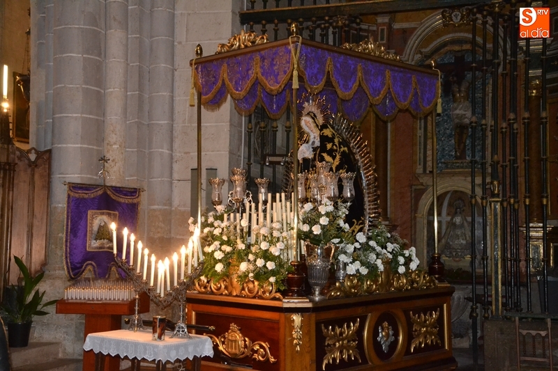 La Catedral de Santa María de Ciudad Rodrigo está viviendo las últimas jornadas de la habitual novena en honor a la Virgen de los Dolores organizada por la Cofradía de Nuestra Señora de La Soledad, cuya imagen titular ya está lista para procesionar por las calles mirobrigenses en la noche del Viernes Santo.