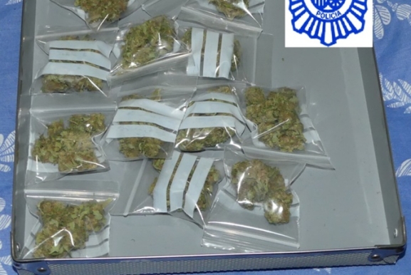 En el transcurso de la investigación se logró identificar a los dos presuntos autores, solicitándose mandamiento de entrada y registro al Juzgado de Instrucción número 4, para el domicilio donde ocurrieron los hechos, en la calle El Cid, practicándose en el día de ayer, dando como resultado la intervención de varios documentos personales de la víctima, que había dejado abandonada en su huída precipitada, una pequeña cantidad de dinero, dos teléfonos móviles, 57,16 gramos de marihuana, distribuida en 26 bolsitas con auto cierre y un cogollo, una balanza de precisión y 2 hojas de papel con anotaciones que reflejan la presunta actividad ilícita de los dos detenidos.