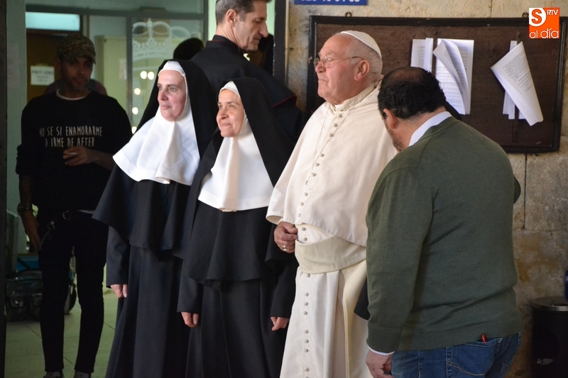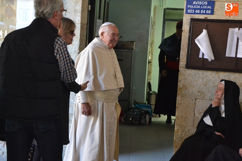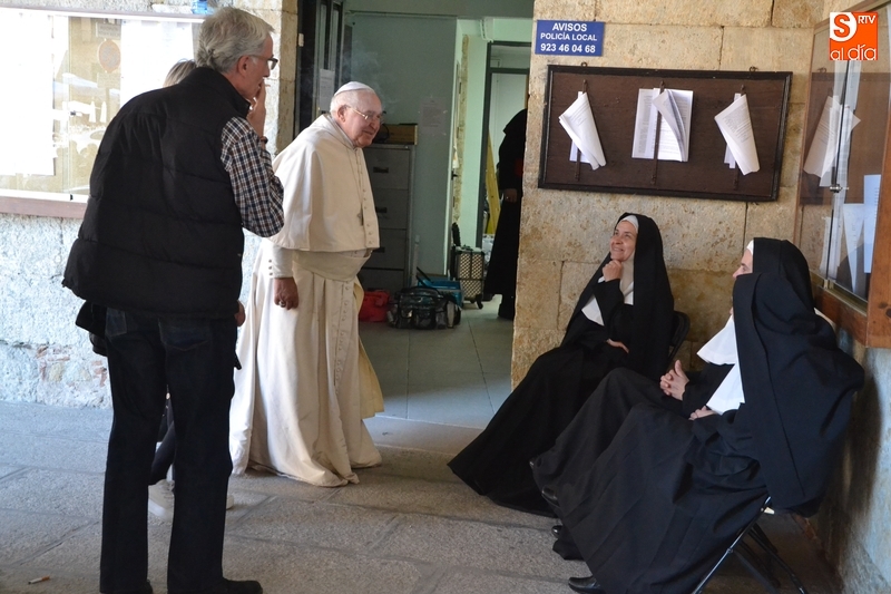 Asimismo, a la hora de comer se estuvo rodando en el salón de plenos de la Casa Consistorial, que en esta ocasión se transformó en el despacho del Papa (apenas tres semanas después de ser el despacho de un líder nazi en el rodaje desarrollado allí para Red de Libertad), contándose como no podía ser de otra forma con un Papa muy parecido al actual, que estuvo acompañado de algún Cardenal. Por esta zona del rodaje se pudo ver a Karra Elejalde.
