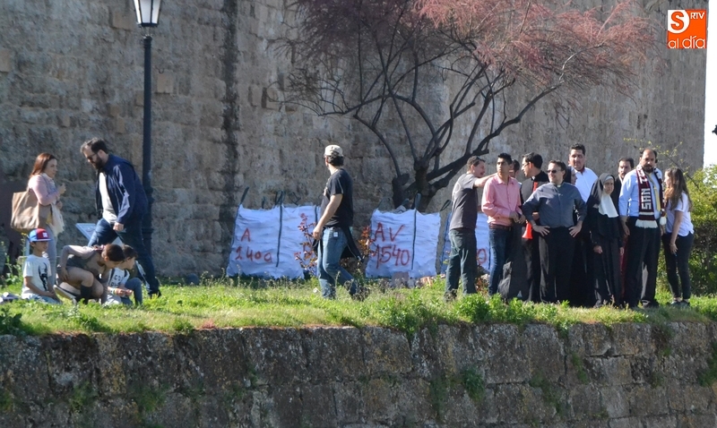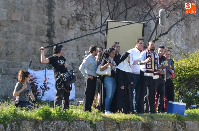 El rodaje en esta zona empezó sobre las 17.45 horas con un plano únicamente de público animando a los equipos que juegan un partido ?concretamente la final de la Champions Clerum- en el foso de la parte derecha: el de los protagonistas de la película, San Teodosio y el del Papa Francisco. Entre ese público estaba el teniente de alcalde Domingo Benito, a quién desde la productora le hicieron participar por su colaboración a lo largo de la elaboración de la película.