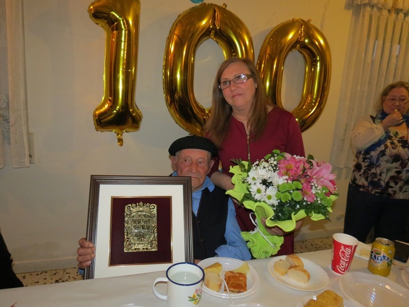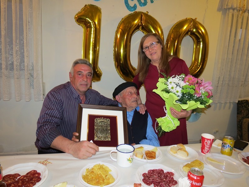 José Miguel Pérez, vecino de Villoria, ha celebrado este viernes sus cien años acompañado por familiares, vecinos y la corporación municipal. El hombre más longevo de la localidad ha sido obsequiado con una placa conmemorativa y un ramo de flores en la fiesta que se han celebrado en su honor.