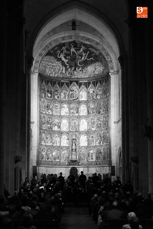 La Catedral Vieja de Salamanca ha acogido esta noche el recital de la coral Loinatz Abesbatza de Beasain (Gipuzkoa), cuyos integrantes han interpretado obras como Sing Joyfully (William Byrd), Richte Mich, Gott (Félix Mendelssohn), Bogoroditsie devo (Sergei Rachmaninoff), Soneto (Juan Calos Múgica / Texto de Santa Teresa de Jesús) o Laudate pueri (Javier Busto).