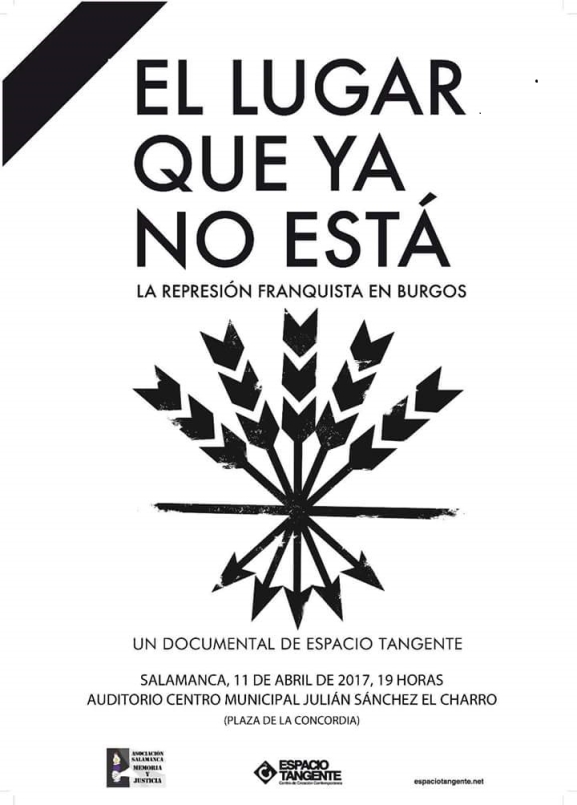 El próximo martes 11 de abril, a las 19.00 horas, en el auditorio del Centro Julián Sánchez El Charro, se proyectará el documental 'El Lugar que ya no está. La represión franquista en Burgos'. Un acto organizado por la Asociación Salamanca Memoria y Justicia, que incluirá la presentación y charla-debate con uno de sus creadores, Álvaro Alonso, perteneciente al colectivo Espacio Tangente.
