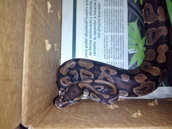 La Policía Local ha depositado en el terrario de una clínica veterinaria una serpiente pitón real que se encontraba en la vía pública, junto a un portal, en el interior de una caja de cartón. El ofidio, de más de un metro de longitud, fue descubierto por un ciudadano que paseaba por la calle Guadalajara, a las 18 horas del lunes, día 10 de abril.