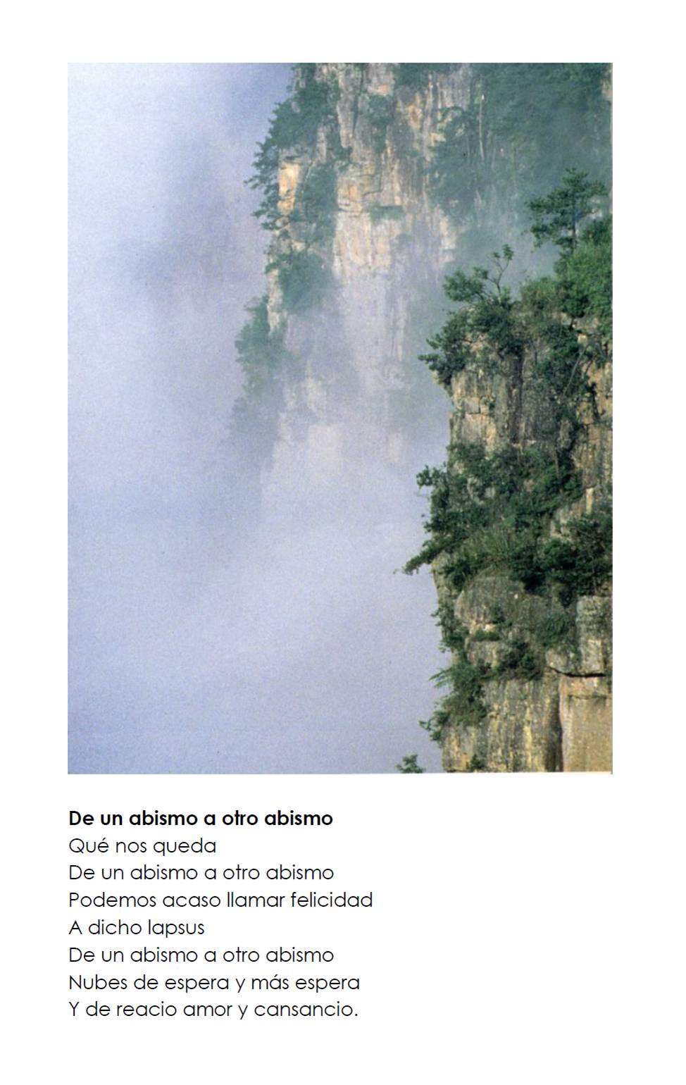 Destacable es la trayectoria de Luis Cruz-Villalobos (Santiago, 1976), poeta y editor chileno que, desde hace algunos años, viene publicando sendos libros donde hace entrar en perfecta comunión a la fotografía con la poesía. Entre esos libros están los que ha firmado conjuntamente con artistas como David Gysel, Yerko Vuscovich, Julie de Waroquier o Rosa Gómez, entre otras/os. Ahora tiene contraparte china y el resultado no puede ser más hermoso: versos tallados a partir de paisajes captados de Yuan Li. El libro se titula "Expresiones del paisaje" y acaba de ser editado bajo el sello de Hebel Ediciones, en Santiago de Chile.