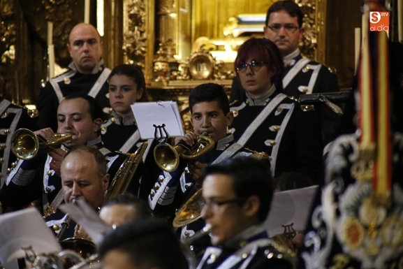 La Semana Santa en Salamanca posee una corona monumental de extraordinaria belleza. Las calles: Rúa Mayor, Compañía, Puente Romano, Corrillo, Plaza Mayor?ofrecen un decorado a los pasos y oficiantes de asombroso y peculiar ornamente estético. Pero hagan un experimento, por favor. Si son espectadores en vivo de una procesión tápense los oídos unos minutos, sólo los ojos. Si la ven por televisión, ya sea aquí o en cualquier otro lugar, bajen el volumen de la televisión. ¿Qué ocurre?, ¿qué sensación les da?. ¿qué falta?. Si a la Semana Santa le falta la banda sonora de la música escrita e interpretada para la ocasión?yo creo que se pierde el alma. Si los cargadores y los cofrades no sienten en el pulso y el corazón el sonido armónico, acompasado y columpiante de la percusión asomar por encina de la ventisca silenciosa de los pasos, las cruces y las cadenas que arrastran las promesas?entonces la Semana Santa ¿muda?... No acierto a suponer tal cosa.