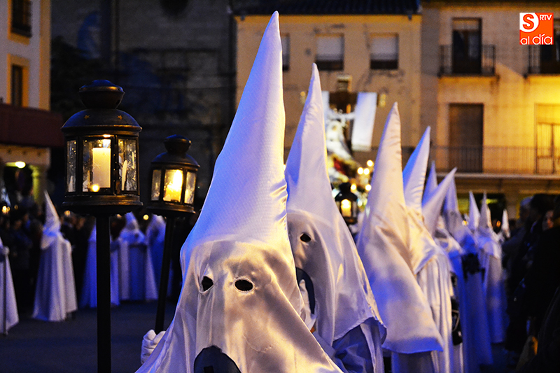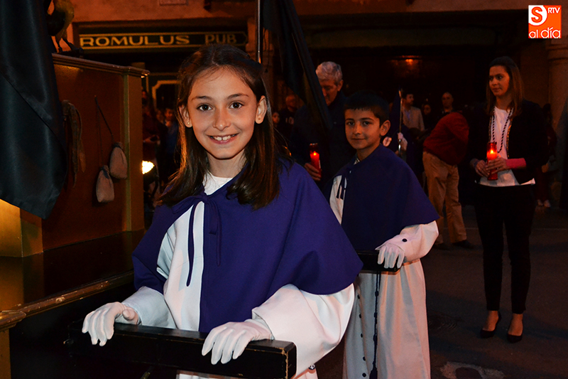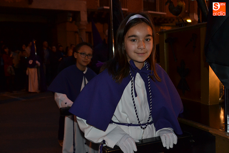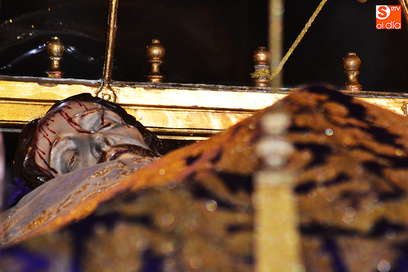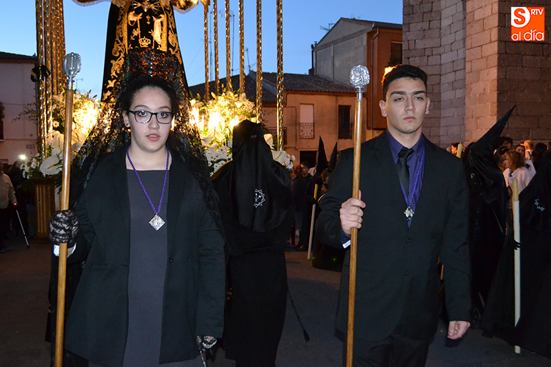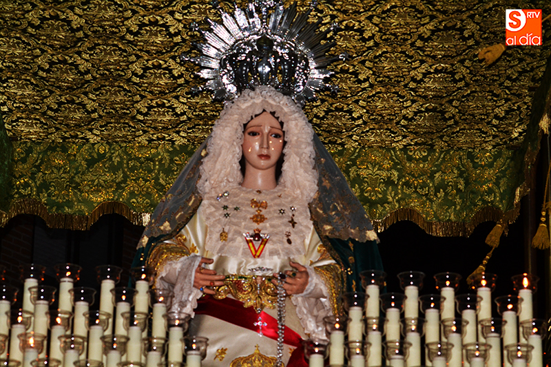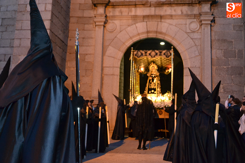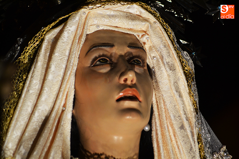 zo la procesión del Silencio, en la que participaba la Virgen de la Soledad, simbolizando el duelo presente entre un sobrecogedor mutismo. La imagen estuvo acompañada por cofrades y fieles que portaban velas encendidas como muestra de su respeto ante la muerte del Señor.