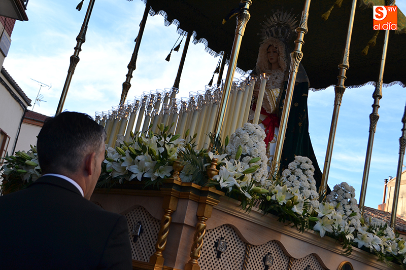 El punto y final a la Semana Santa tendrá lugar este domingo desde las 10 de la mañana con la procesión del Resucitado, organizada por la Hermandad de Cofradías, Cofradía Preciosa Sangre y Nuestra Señora de la Soledad. Un recorrido que arrancara desde el templo parroquial y culminara en la Plaza de la Constitución donde tendrá lugar la tradicional retirada del luto a la imagen de Nuestra Señora de la Soledad por parte de un pequeño San Miguel, simbolizando así la resurrección de Cristo.
