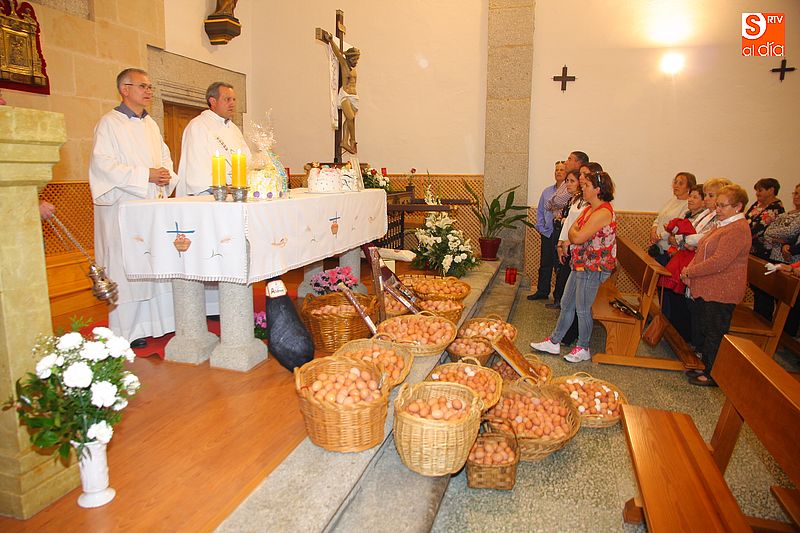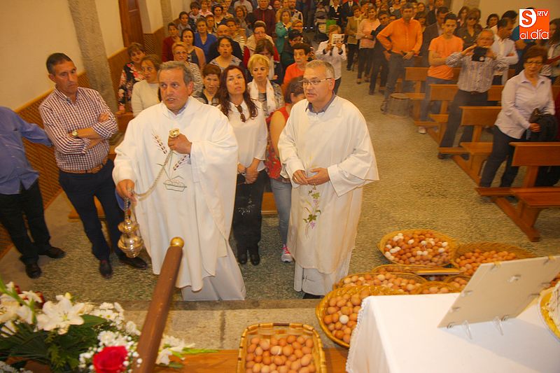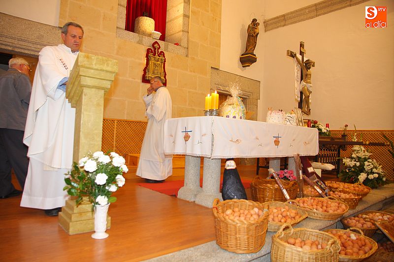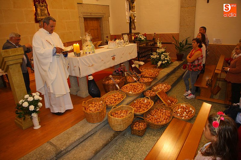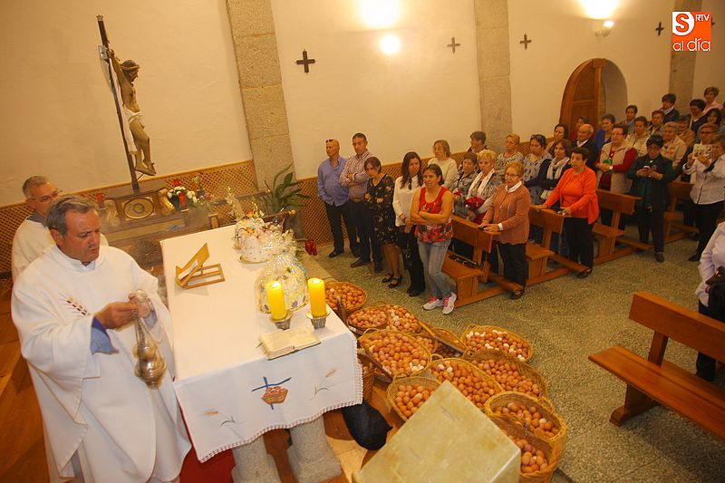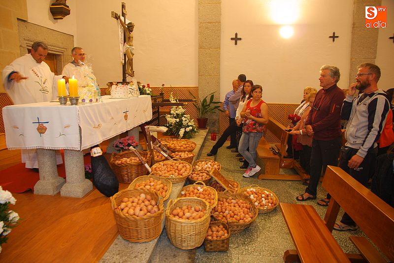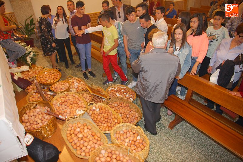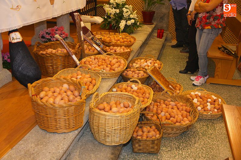 Los 2.400 huevos se vendieron a 5 euros la docena a todos los vecinos y visitantes en una ermita llena por completo. Además de los tradicionales huevos, se entregaron otras ofrendas como un jamón, embutido y dos tortas. Durante la ceremonia, recibieron la bendición las ofrendas, así como un grupo de peregrinos procedentes de varios países de Europa y América. Finalmente, se anunciaron los mayordomos para el festejo del próximo año: Flory Sánchez, Juani García, Carmen Herrera y Emilio Gómez.