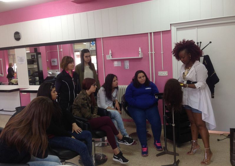 Linda Kraidy, antigua alumna del centro, ha enseñado a los participantes a realizar peinados afro con extensiones