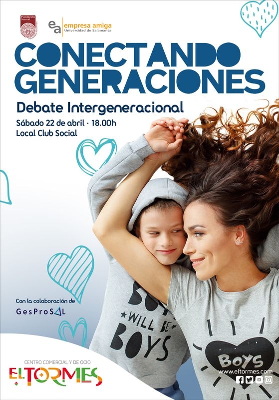 El Centro Comercial El Tormes acogerá mañana sábado, día 22 de abril, el Debate Intergeneracional 'Conectando Generaciones', organizado por la Fundación General de la Universidad de Salamanca con la colaboración de Gesprosal, Senior Talent y el Centro Comercial.