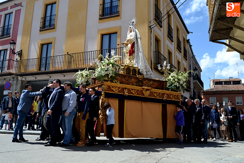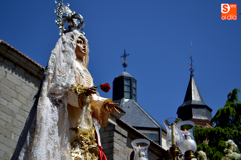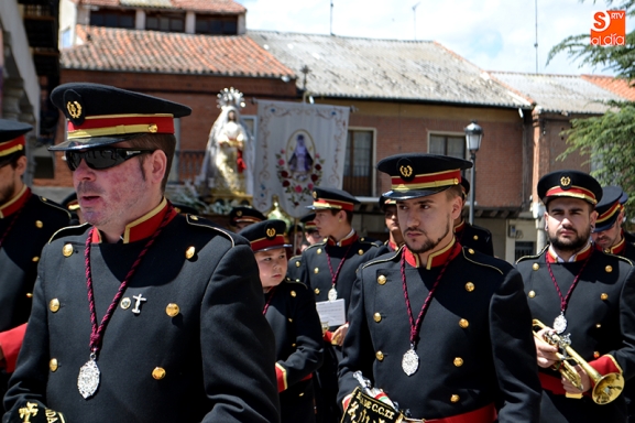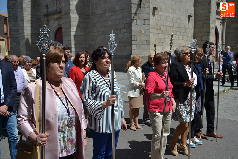 Portada a hombros por varios cofrades y devotos, la Misericordia recorrió la Plaza de la Constitución, siempre arropada por la música y el público. La celebración terminaba con el nombramiento de Alfonso Tiedra y María Blázquez como Mayordomos de esta respetada imagen peñarandina.