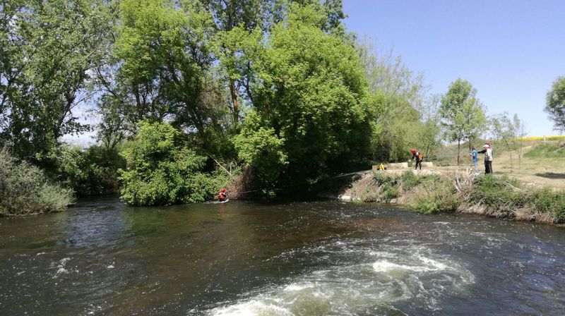 Una mujer ha tenido que ser rescatada en río Tormes por los Bomberos de la Diputación de Salamanca tras haber caído al agua al intentar a salvar a su perro en la aceña El Canto, junto al campo de golf de Villamayor. Según testigos del suceso, la chica cayó al río al tirar un palo para ayudar a su perro y quedó atrapada en unos matorrales al intentar sacarlo del agua.