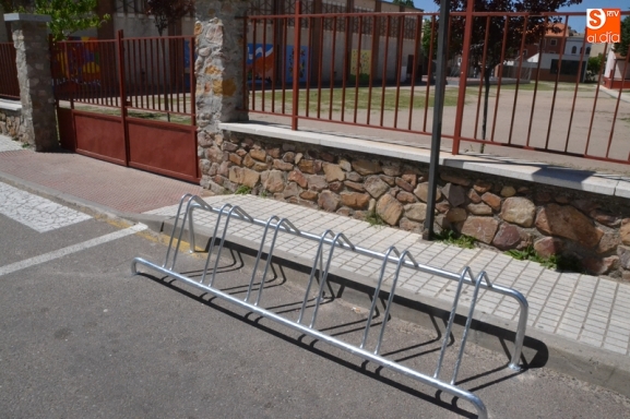 Además de servir para que aquellos niños que quieran puedan dejar sus bicis, la colocación de estos aparcabicis tiene también como finalidad dejar más libre la puerta de entrada, al no poder aparcar los vehículos tan encima de la misma.