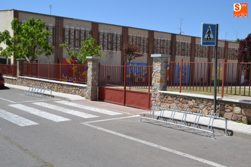 La entrada al Colegio San Francisco de Ciudad Rodrigo que da a la calle Cardenal Tavera cuenta desde esta semana con dos nuevos aparcabicis, situados uno a cada lado de la entrada, en dos puntos que hasta ahora estaban reservados al aparcamiento de vehículos motorizados.