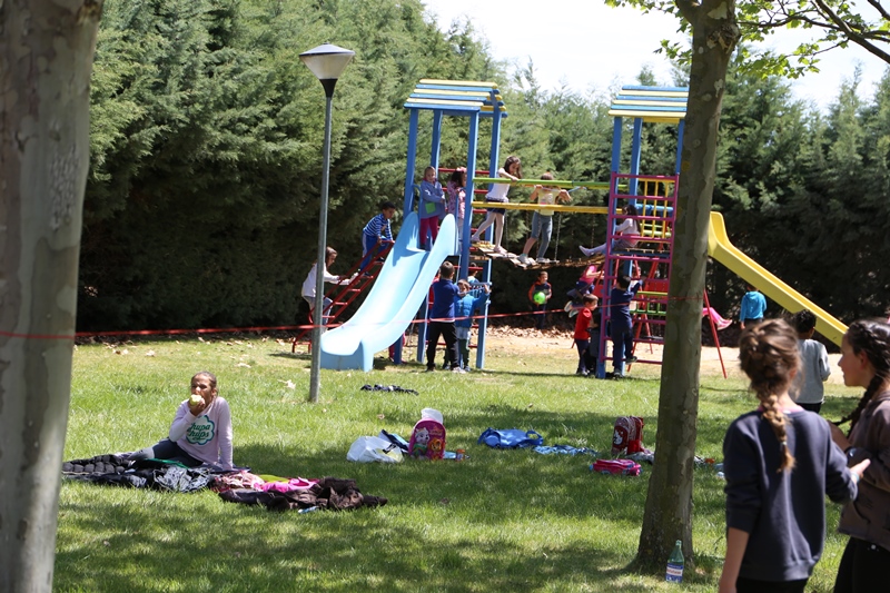 Alumnos y profesores del CEIP Filiberto Villalobos de Babilafuente se han sumado este viernes una vez más a la Operación Bocata que cada año realiza el centro en beneficio de la ONG Acción Verapaz. El recinto de las piscinas ha acogido la actividad, en la que los alumnos han comido un bocadillo para después ponerse a jugar en el césped y en el parque.