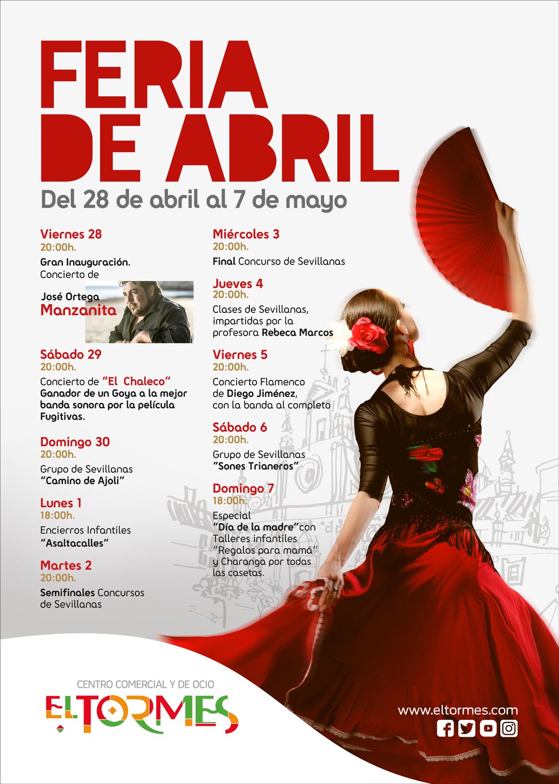 Este sábado será "El Chaleco", el ganador de un Goya a la mejor banda sonora por la película "Fugitivas", quien ponga la nota musical a esta feria. El domingo actuará el Grupo de Sevillanas "Camino del Ajolí" y el lunes festivo, a las 18,00 horas, se celebrarán encierros infantiles. El martes y miércoles, 2 y 3 de mayo, se celebrará un Concurso de Sevillanas en el que podrán participar niños y adultos (a partir de 13 años). Los interesados en participar deben inscribirse previamente en el Club Infantil del Centro Comercial El Tormes. Los premios consisten en una merienda y cine en el caso de los niños; y cena y cine para los adultos que ganen el concurso.