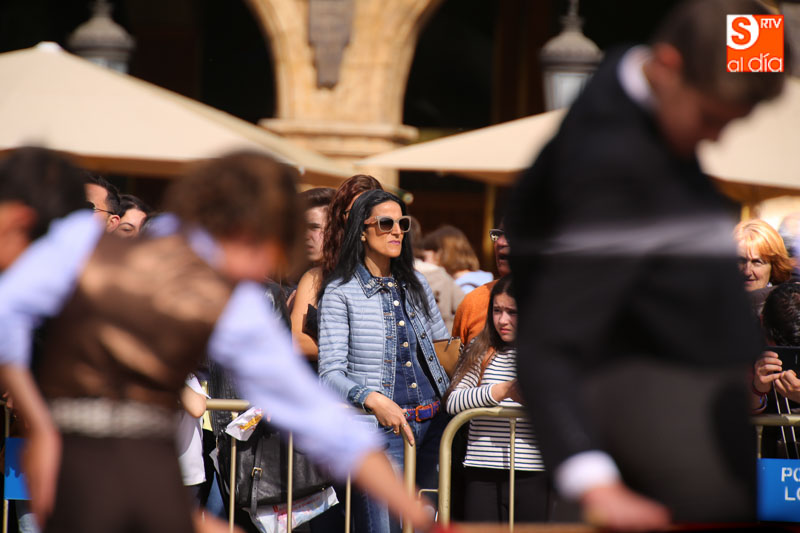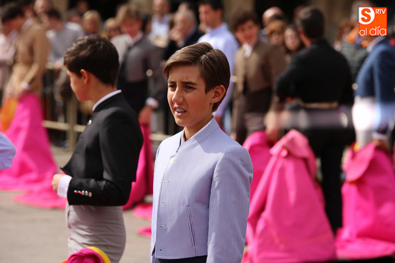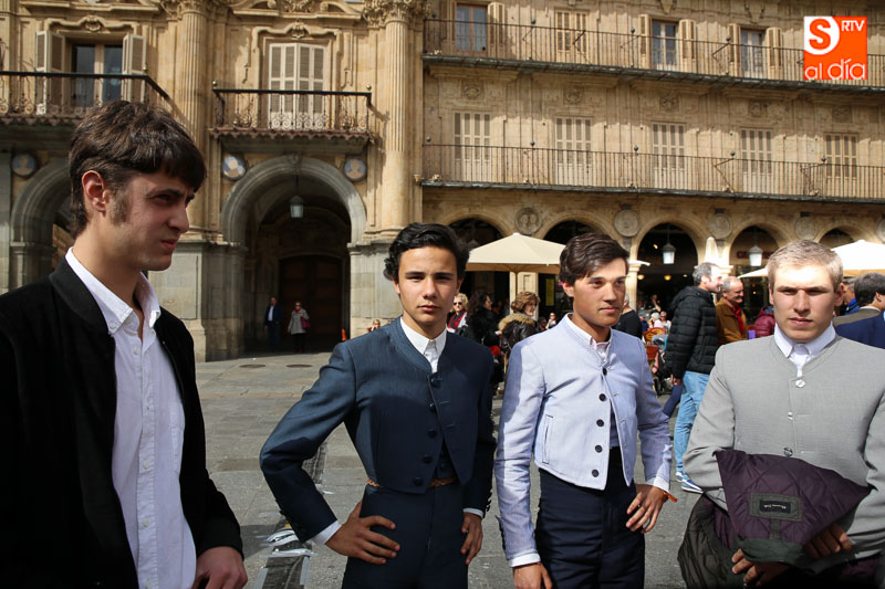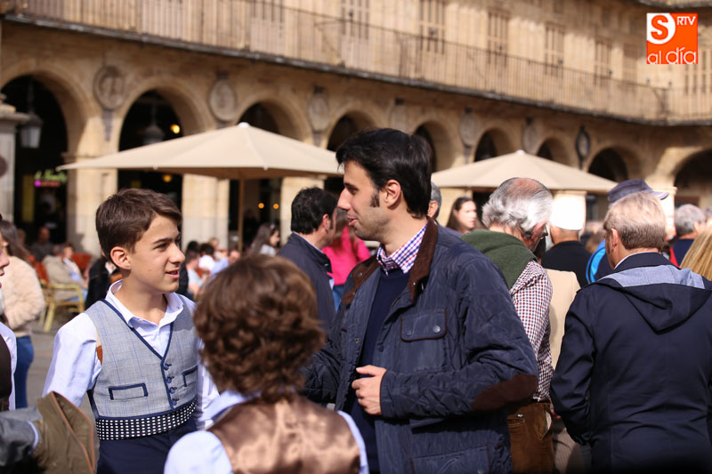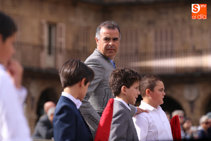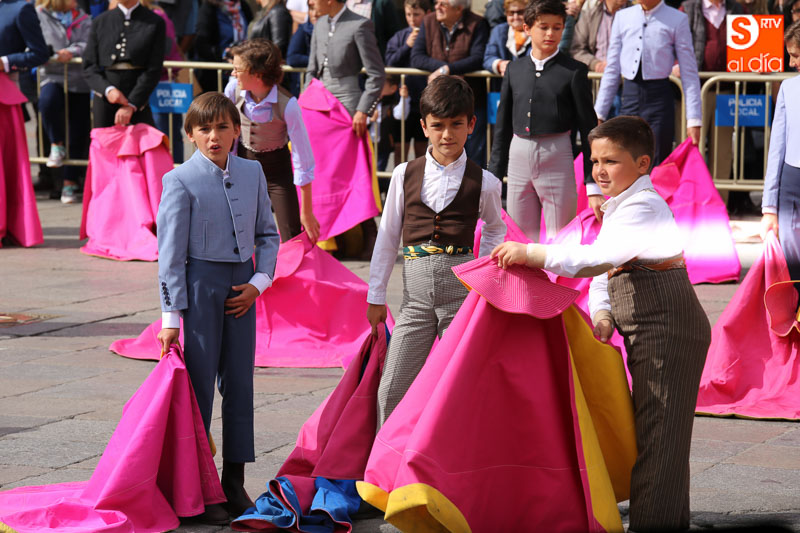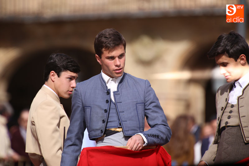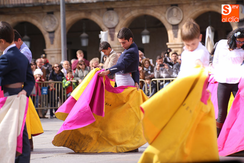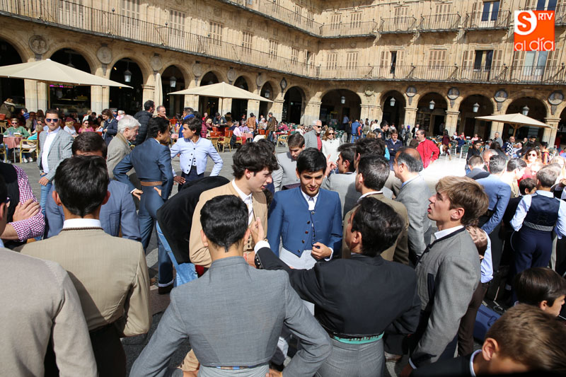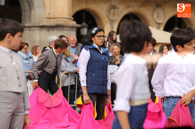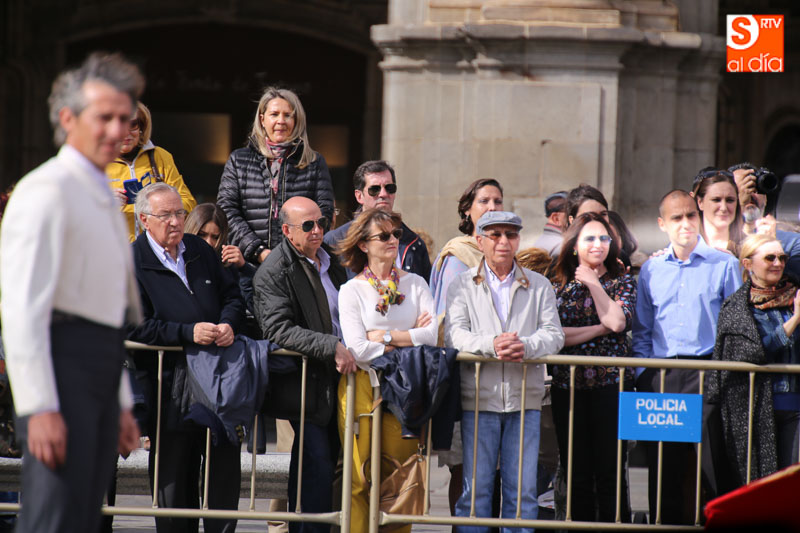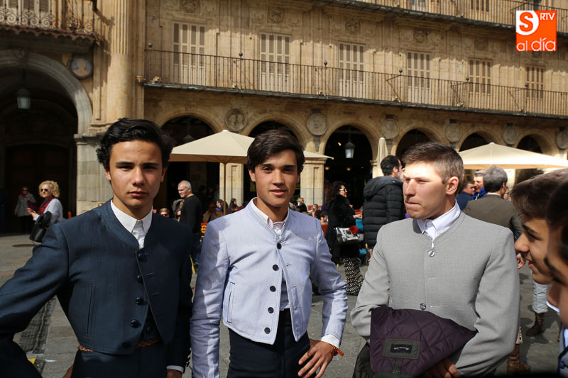 El secretario general de la Consejería de Cultura y Turismo, José Rodríguez Sanz-Pastor, junto con el presidente de la Diputación de Salamanca, Javier Iglesias, y al maestro salmantino Santiago Martín 'El Viti', ha asistido esta tarde a una exhibición de toreo de salón por parte de los alumnos de la Escuela de Tauromaquia de Salamanca. La Plaza Mayor ha sido el escenario en el que cerca de un centenar de participantes han mostrado al público sus destrezas adquiridas durante su formación y al ritmo de música clásica han realizado de forma acompasada diferentes suertes del toreo con capote y muleta.