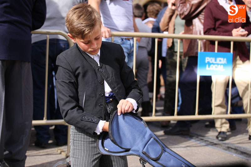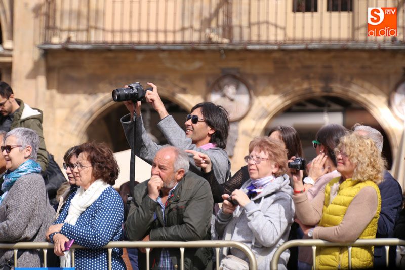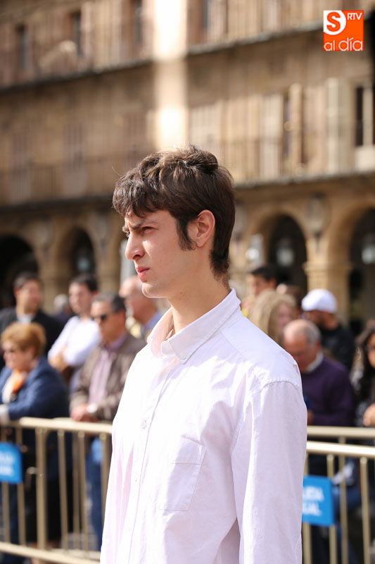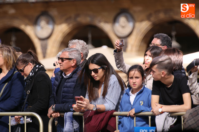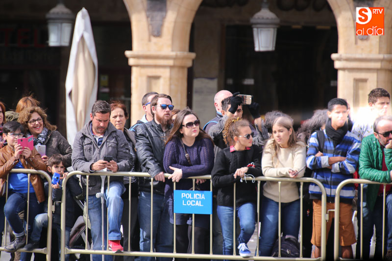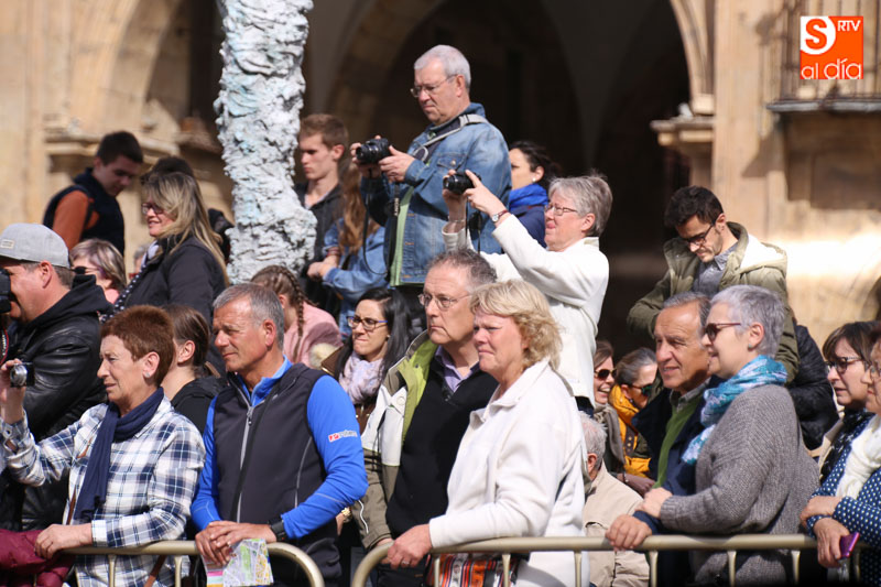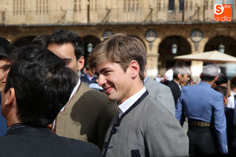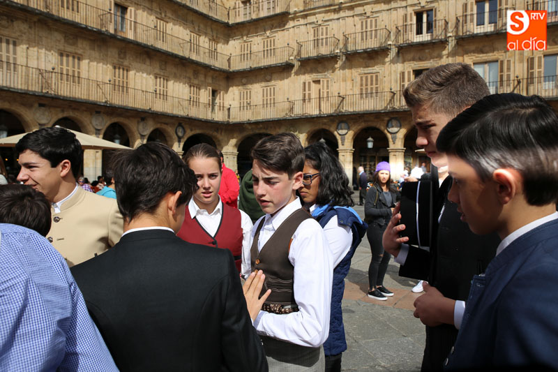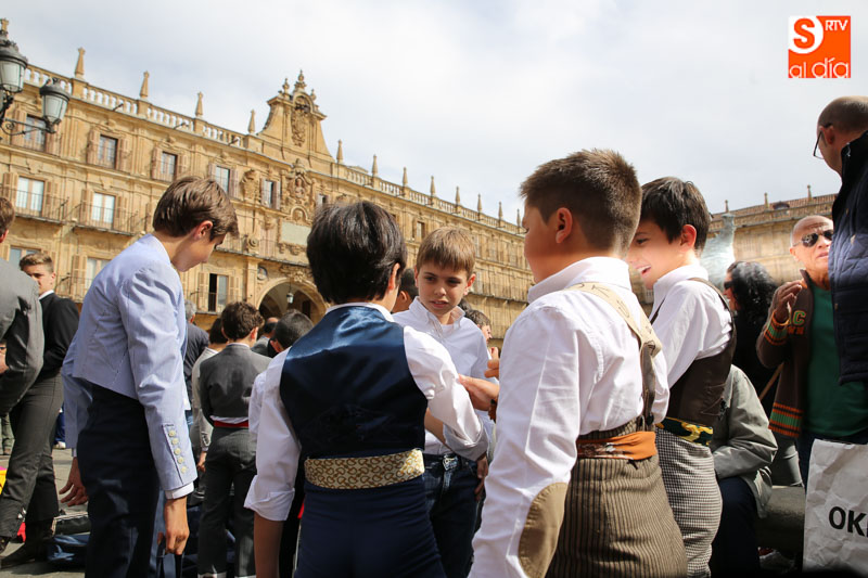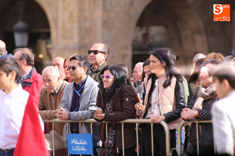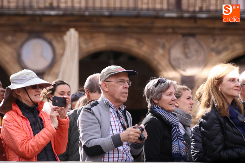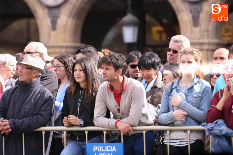 El secretario general de la Consejería de Cultura y Turismo, José Rodríguez Sanz-Pastor, junto con el presidente de la Diputación de Salamanca, Javier Iglesias, y al maestro salmantino Santiago Martín 'El Viti', ha asistido esta tarde a una exhibición de toreo de salón por parte de los alumnos de la Escuela de Tauromaquia de Salamanca. La Plaza Mayor ha sido el escenario en el que cerca de un centenar de participantes han mostrado al público sus destrezas adquiridas durante su formación y al ritmo de música clásica han realizado de forma acompasada diferentes suertes del toreo con capote y muleta.