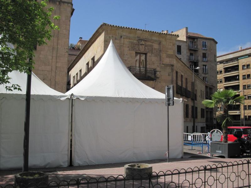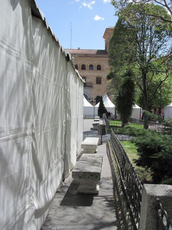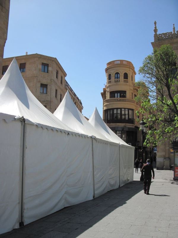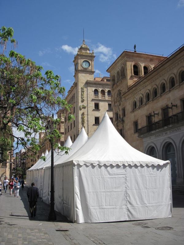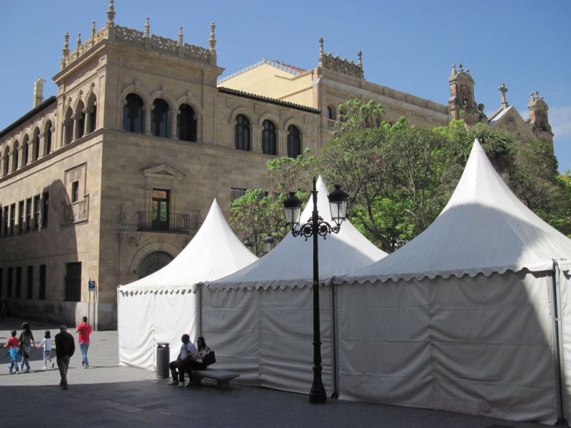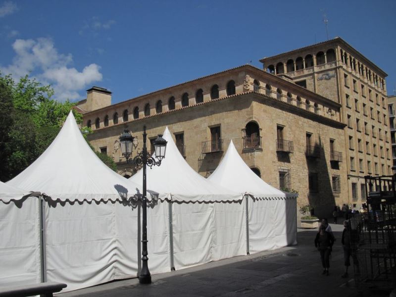 "Desde el pasado 20 de abril el espacio interior y la calzada lateral de la plaza de los Bandos, al igual que la calle Zamora, se encuentran ocupados por una serie de llamativas casetas o jaimas las cuales destacan por sus dimensiones, forma, color y por entorpecer el tránsito de los viandantes, la contemplación de los monumentos, así como el disfrute de la misma, de su arbolado y del paisaje urbano". Es la valoración de Ciudadanos por la Defensa del Patrimonio.