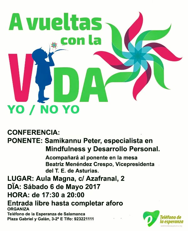 El sábado 6 de mayo, a las 17.30 horas, en el aula de la calle Azafranal 2, tendrá lugar una conferencia de Samakanu Peter sobre el desarrollo personal, en la que también intervendrá Beatriz Menéndez, vicepresidenta del Teléfono de la Esperanza de Asturias.