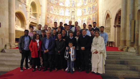 El CF Salmantino cumplía el viernes con la tradición de ofrecer el ascenso a Tercera a la Virgen de la Vega, patrona de Salamanca. En un emotivo acto celebrado en la Catedral Vieja de Salamanca, la primera plantilla, personal y directivos del club, acompañados por algún aficionado, asistieron a una misa y ofrecieron un ramo de flores y el ascenso a la Virgen. Los capitanes y el presidente del club, Carlos Martín, depositaron un ramo de flores en el altar. En el acto también estuvo presente el concejal de Deportes, Enrique Sánchez-Guijo, que también acompañó en la ofrenda floral.