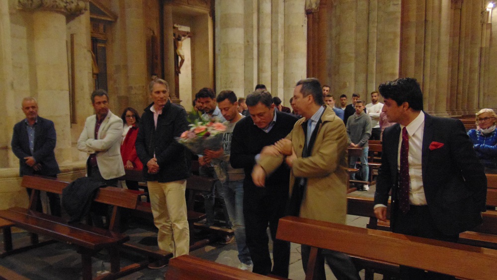 En un acto celebrado en la Catedral Vieja, primera plantilla, personal y directivos asistieron a una misa y ofrecieron un ramo de flores