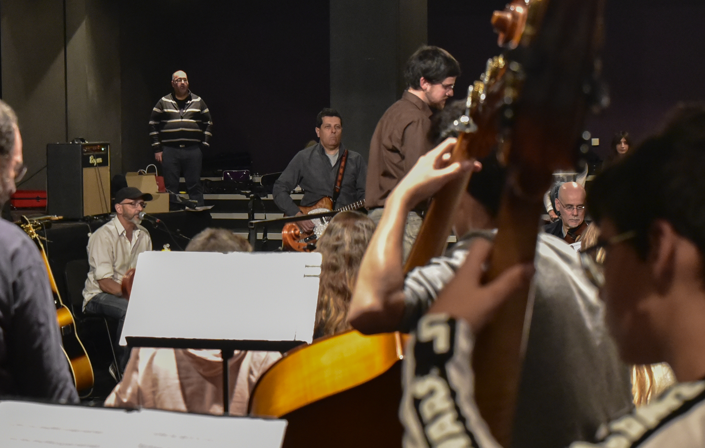 Me acompañan algunos amigos que son la esperanza del mundo. Una joven orquesta cumpliendo veinte años, veinte años de música con la esperanza de compartir notas que hacen un mundo mejor. Un mundo lleno de armonía? mientras en el fondo de la sala golpea, sincopado, el bajo amoroso de Pepe Seven.