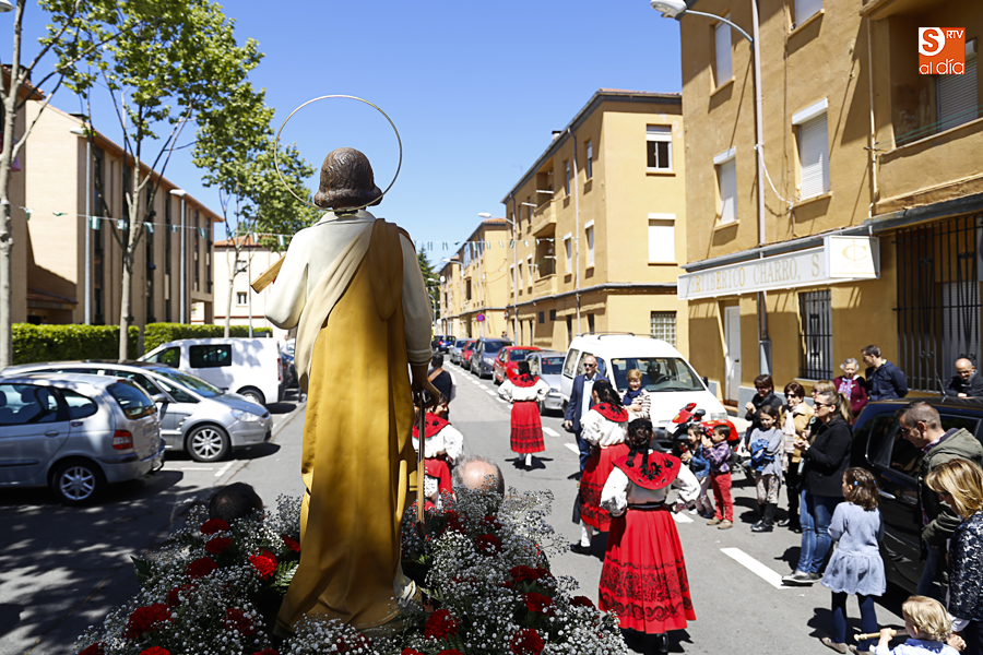 Vecinos y amigos se han sumado a la celebración de la misa y posterior procesión por las calles del barrio