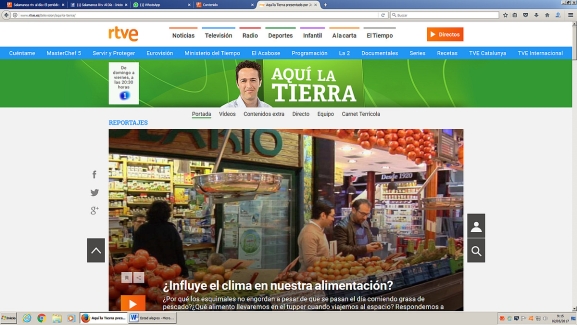 ¿Quién dijo que el clima no puede ser divertido? Jacob Petrus, geógrafo especializado en climatología, nos ofrece todas las tardes de lunes a viernes una mirada inédita y entretenida sobre nuestro planeta. Los televidentes pueden comprobar cómo la salud, la arquitectura, la conducta, incluso el arte o la economía, pueden estar condicionados por la meteorología. Los reporteros de 'Aquí la tierra' acercan las mejores y más curiosas imágenes de nuestro país "desde un punto de vista nunca visto", afirman sus responsables. Expertos, científicos y famosos deportistas, músicos o actores, demuestran que el clima está mucho más cerca de nuestras vidas de lo que pensamos. Y con esa filosofía afrontan todos los días de 20,30 a 21,00 horas este espacio televisivo.