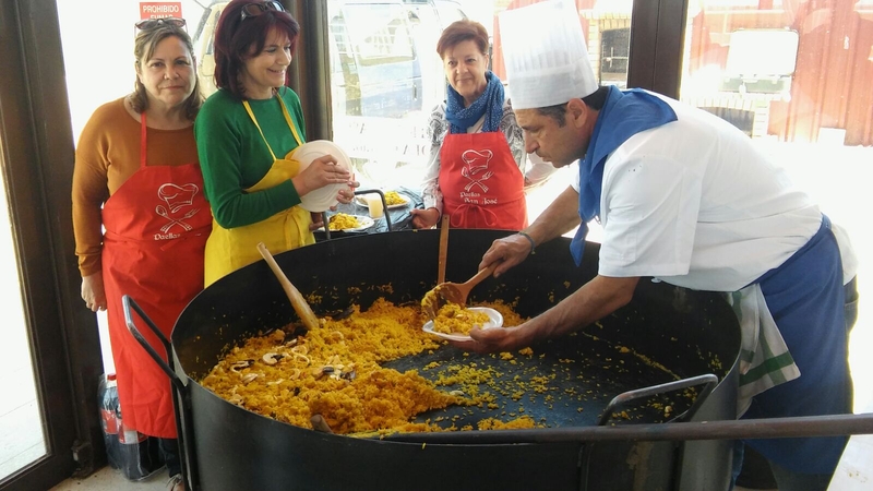 A la hora de comer, fue turno para degustar una gran paella preparada por Paellas San José, que dio paso a una animada sobremesa en la que se jugó al bingo. Concretamente, hubo tres partidas en las cuales los ganadores (Pauli, Cabrillas y Merce) se llevaron 30? cada uno, mientras que los que cantaron línea tuvieron como premio una botella de vino.