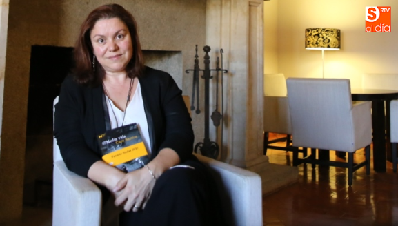 La escritora ganadora del Premio Nadal en 2017, Care Santos, ha protagonizado un encuentro literario, este miércoles, en el Salón de la Chimenea del Colegio del Arzobispo Fonseca.
