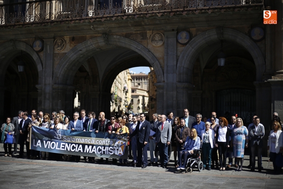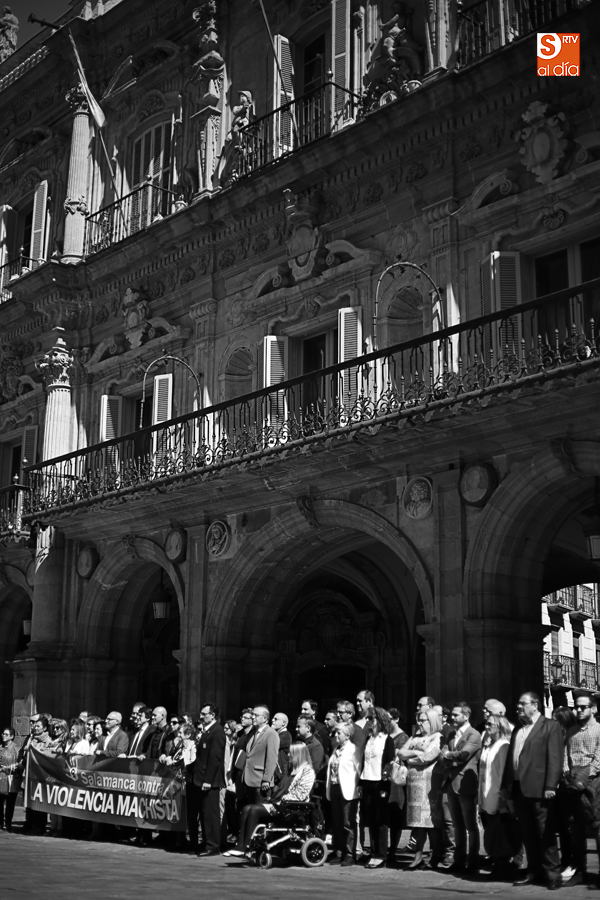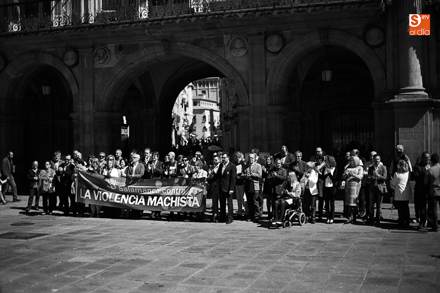 Minuto de silencio en la Plaza Mayor por la última víctima de violencia machista. Representantes de los diferentes grupos políticos se han sumando al minuto de silencio como muestra del más absoluto rechazo a la violencia de género y como apoyo a las víctimas que sufren el maltrato. Este pasado martes un hombre mataba a su pareja de 44 años y al hijo de esta, de 12, en Alcobendas.