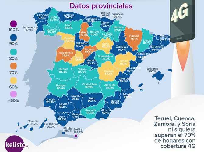 Castilla y León es la comunidad con menor porcentaje de cobertura 4G
