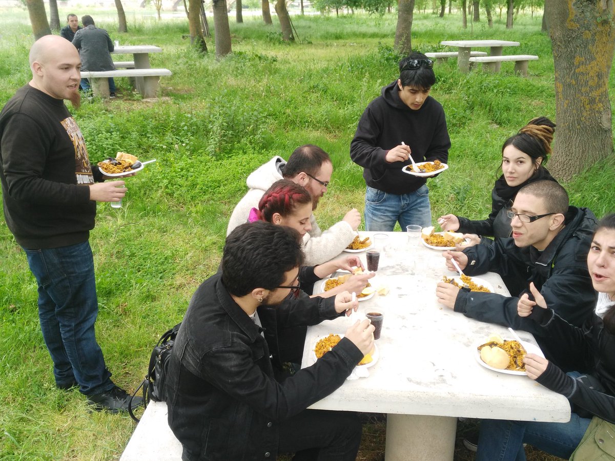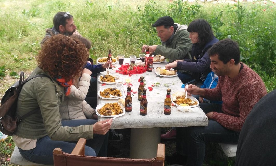 Concluidos los talleres, hubo una comida conjunta consistente en una paella preparada por integrantes del Centro Social Aldea, de la que se dio buena cuenta en las mesas situadas al aire libre en los aledaños de La Fábrica. A la hora de publicarse esta información ?primera hora de la tarde del sábado-, están ya en marcha los talleres que componen el 2º tramo del Día de la Fábrica. La jornada se rematará con unos conciertos a partir de las 20.00 horas.