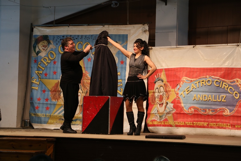 El multiusos Bernardo Cuesta de Villoruela se ha llenado este sábado de risas, sorpresas y caras de admiración con la actuación del Teatro Circo Andaluz. Pequeños y mayores han disfrutado del payaso, los trucos de magia e incluso la habilidad de un fakir con el fuego.
