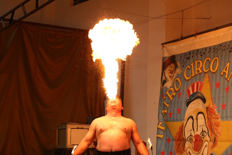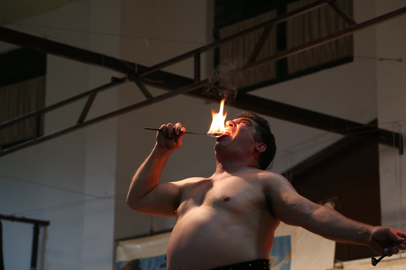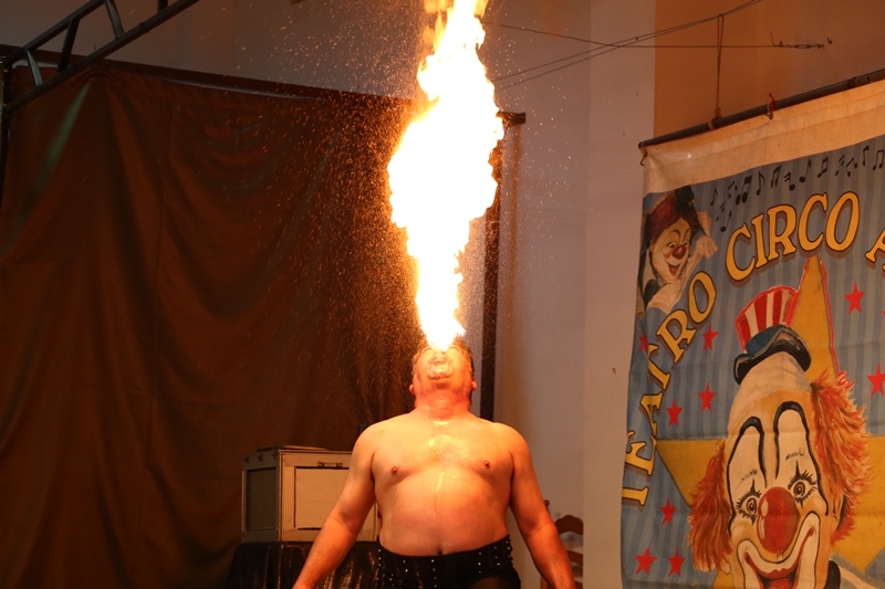 Uno de los número más llamativos ha sido el del fakir, que ha pasado por su cuerpo antorchas ardiendo, ha comido bolas de fuego y ha creado un volcán humano escupiendo una gran llamarada.