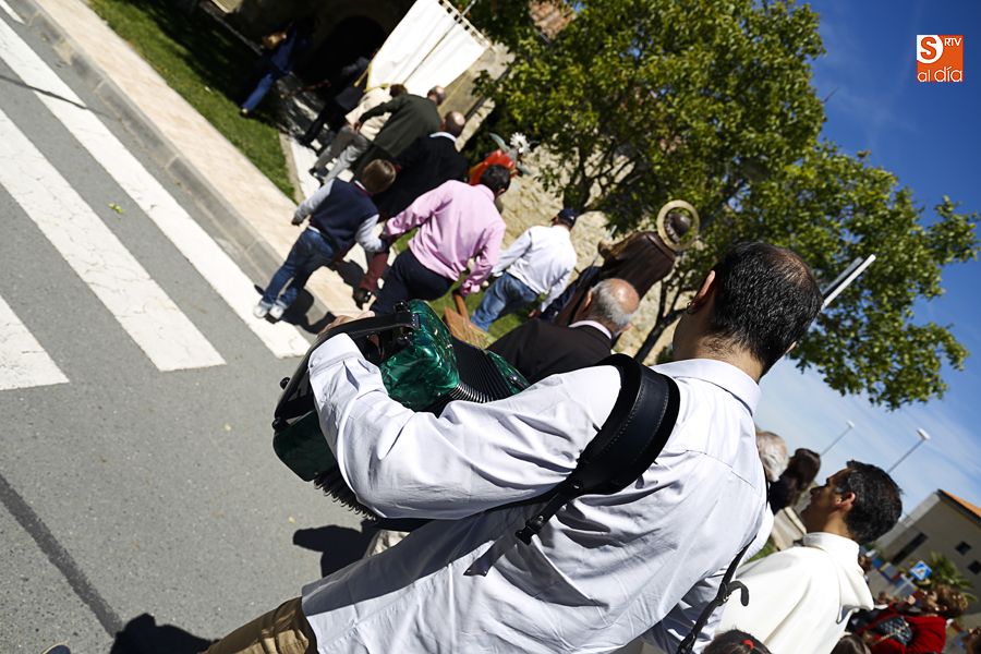 Día grande en Monterrubio de Armuña en las fiestas en honor a San Miguel. Vecinos y amigos del municipio se han sumado a la celebración de la tradicional misa y posterior procesión, acompañados en esta ocasión por Raúl Díaz de Dios y su acordeón.