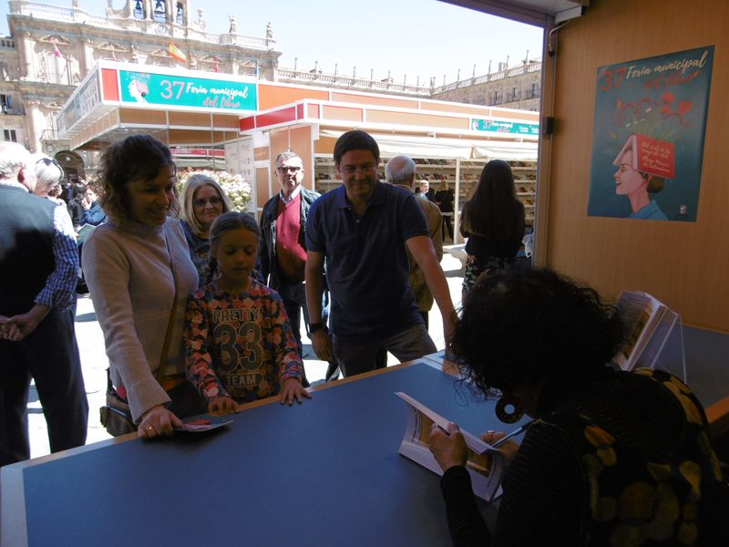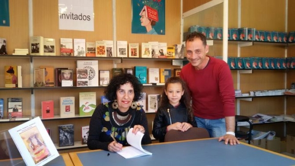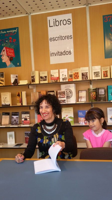 Sofía Montero García ha firmado hoy en la Feria del Libro su poemario infantil 'Poema, poemita, poemazo' que está ilustrado con montaje de fotos, realizadas por la autora (portada, contraportada e interior del libro), alusivas a los poemas.