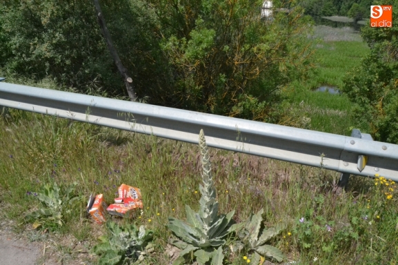 En la mañana del lunes se podían ver en el arcén de la Nacional 620, apenas unos metros más adelante del Puente Nuevo, tres cajas vacías de conos de helados, que parecían llevar poco tiempo en el lugar.